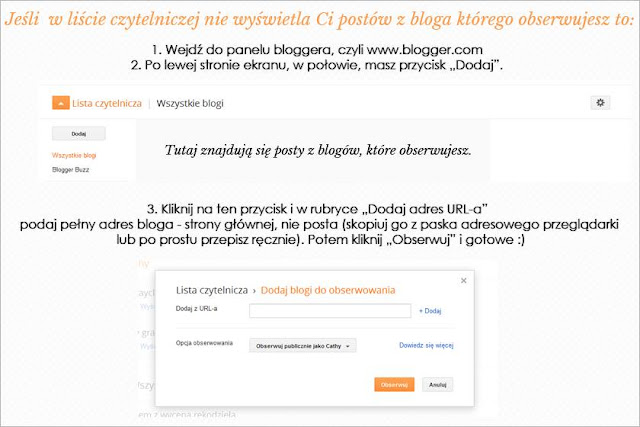 Wszystkim z góry dziękuję i przepraszam za mały kłopot. Przez zmianę nazwy bloga, nie pojawiam się już na Waszej liście czytelniczej, ale dzięki tej instrukcji wszystko wróci do normy.